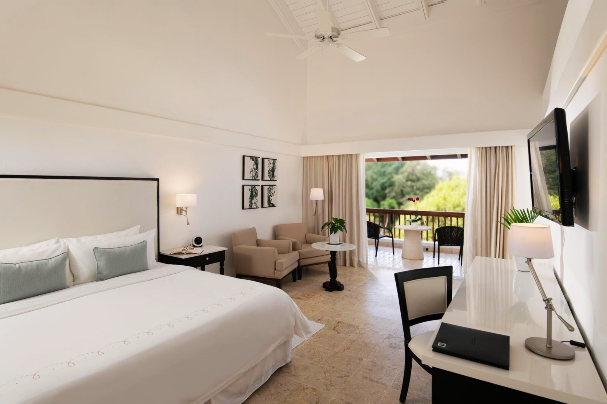 > Elites Room exceptionnelles avec vue sur le golf. Très vastes, TV LCD, lecteur BluRay, réveil-matin radio, cafetière NESPRESSO, salle de bains moderne avec WC, douche et baignoire séparées, produits "L'Occitane". Voiturette de golf durant séjour pour circuler dans le resort. > Lodge rooms, plus petites et confort moins luxueux que les Elites. Décoration traditionnelle dominicaine. Chambres rénovées (notamment écran plat). > Possibilité de louer une villa. 2 à 5 chambres.