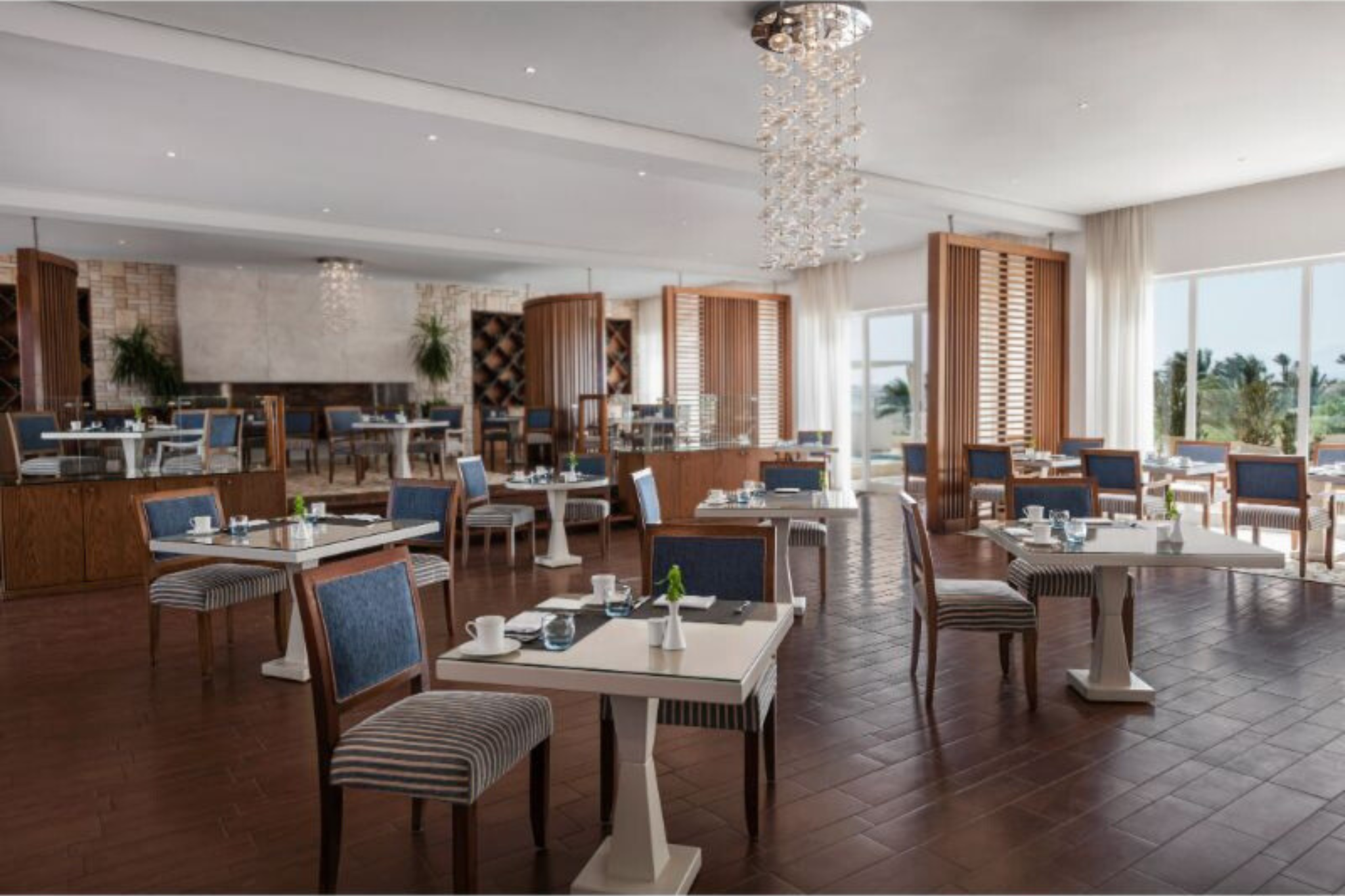 La gastronomie est à l’honneur avec plusieurs espaces dédiés : > Eagle Restaurant – buffet international pour le petit-déjeuner et le dîner > Nineteen Restaurant – restaurant à la carte pour le déjeuner, avec vue sur le golf > Bogey Bar – ambiance conviviale avec musique live > Pool Bar – rafraîchissements et cocktails au bord de la piscine Dans le cadre de la formule Tout Inclus, les hôtes bénéficient également d’un dîner offert dans l’un des restaurants à la carte de Madinat Makadi, d’un accueil VIP et d’une bouteille d’eau renouvelée chaque jour.
